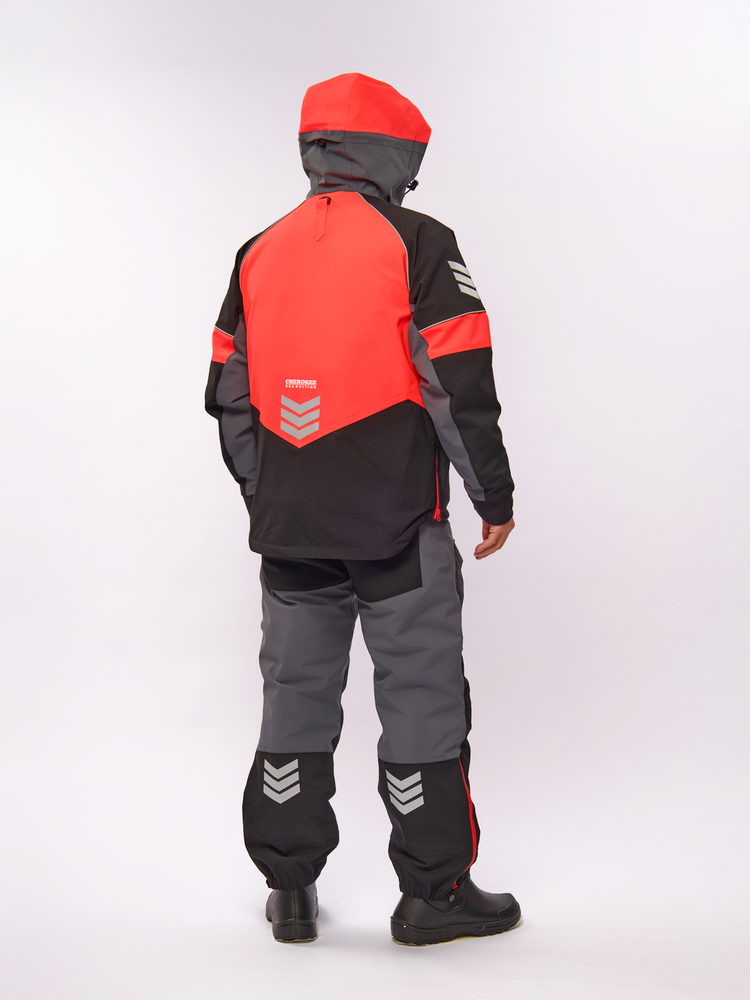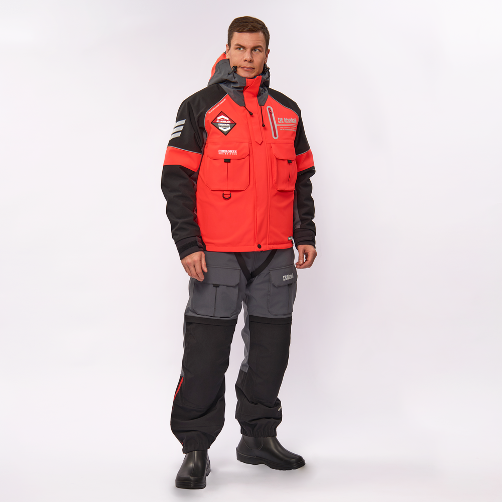 The new two-piece suit “Alaskan Cherokee Sea Edition” is primarily intended for sea fishing. One of the main features is special foam inserts that will help you stay afloat in case of accidental falls. The high-tech AERO-TEX membrane with increased water resistance, the characteristics of which are close to standard GORE-TEX®, guarantees that you will stay dry even during a squall and salt spray. The bright red neon color ensures maximum visibility in gray sea water, which is very important for your safety.